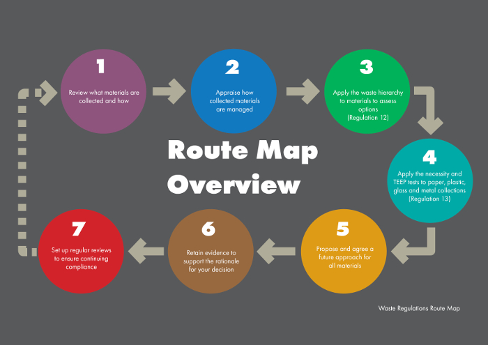 - If it is not technically, environmentally and economically practicable (TEEP) to do this, you will need to implement the most suitable alternative solution and ensure you have evidence as to why a separate collection is not practicable. If you are already separating out the recyclable materials into a combined waste collection, you will need to consider the suitability of this, and whether your waste contractor has the capability to separate these out into separate individual waste streams. As a minimum you are likely to be required to have a separate glass collection.